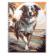 Colourful vivid art design of a Australian Shepherd at a tropical beach.