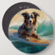 Australian Shepherd Beach Surfing Painting 6 Cm Round Badge
