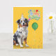 Australian Shepherd Dog in a Party Hat Birthday Card