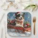 Australian Shepherd Dog in Sledge Chriistmas Paper Plate