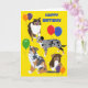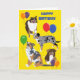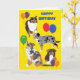 Create a custom birthday card for your favourite dog lover. This card features realistic style illustrations of Australian Shepherd or Aussies dogs and colourful party balloons against a bright yellow background. The message on the front and on the inside can be customised with your own text.