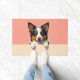 The soft coral peach background adds a warm and stylish touch, perfect for brightening up any entryway. Designed with extra space at the top and bottom, it allows easy customization with names, welcome messages, or personalized text—making it ideal for unique dog-themed doormats and thoughtful gifts.