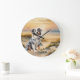 A summer beach cove with tall grasses and the sun setting over the ocean that sets off a sweet Australian Shepherd dog creates lovely wall clock that is sure to bring smiles.