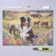 Immerse yourself in the tranquil beauty of the countryside with this exquisite decoupage paper design featuring an Australian Shepherd gracefully standing in a scenic field. As the sun sets in the background, casting a warm glow over the rustic barn and surrounding animals, this enchanting scene captures the essence of a peaceful evening on the farm. Perfect for adding a touch of natural charm to your crafting projects.