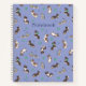 Here is a fun notebook featuring my illustrations of different coloured Australian shepherds playing. Mixed with the dogs are frisbees and tennis balls making this a whimsical and engaging pattern set against a light blueish-purple background. Customise the text, and then pick from a soft or hard cover, pick the interior page design, and pick the spiral colour. This makes a great notebook for dog lovers and Aussie owners. It also makes a great, custom gift.