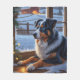 A heartwarming holiday scene featuring a dog sitting peacefully beside a window, surrounded by glowing Christmas lights. This cosy and festive design captures the spirit of the season, perfect for adding warmth and charm to any space. Ideal for dog lovers and holiday decor enthusiasts.