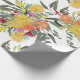 Aussie summer blooms wildflower wrapping paper showcasing wattle, grevillea, summer eucalyptus flowers, and gum nuts in a chic bold summer colour palette. Designed by Aussie artist Jo Story of Sketchbook Designs.