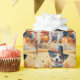 A watercolor-style painting of a cheerful dog sitting amidst a pile of vibrant fall leaves, surrounded by tiny pumpkins and scattered acorns. The dog wears a little pilgrim hat and beams with joy, capturing the spirit of Thanksgiving. In the background, soft harvest fields and golden-hued trees create a peaceful countryside ambiance. Gentle textures and warm, muted autumn tones give the scene a cosy, nostalgic feel perfect for celebrating the beauty of the season.