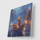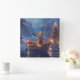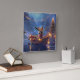 Set sail into the magic of the holiday season with this beautifully detailed illustration, showcasing a proud dog sitting in a festively decorated boat, gliding across a serene Christmas lake. The twinkling lights from nearby pine trees reflect off the water, casting a warm, festive glow that enhances the cosy ambiance. Ornaments dangle from the boat's sides, while glowing lanterns light the way, creating a scene that captures the true essence of Christmas warmth and joy. This nostalgic artwork brings a touch of holiday magic to any space, perfect for those who cherish the spirit of the season.