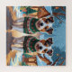 This festive design captures the joyful spirit of the holiday season, featuring an adorable dogs.Nestled in a winter wonderland, complete with a decorated Christmas tree, and beautifully wrapped presents. Snowflakes gently fall, adding a magical touch to the scene, while the vibrant colours of the holiday decorations create a warm and cheerful atmosphere.
