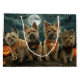 Unleash the spooky spirit with this eerie Halloween design featuring a pack of dogs under a dark, moonlit sky, surrounded by flying bats and glowing pumpkins. Perfect for those who love a touch of frightful fun with their furry friends!