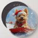 Australian Terrier in Sledge Let it Snow Christmas 6 Cm Round Badge