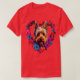 I give wanted to give this a 4 instead of a 5 because these Basic DARK T0shirts run unexpectedly SLIM or Narrow. Which is great if you do not have a potbelly, but I have a paunch. It isn't the shirt's fault that I've got a beer belly. The design and shirt itself is a quality cotton shirt. The color is more of a deep purple, but still a very pretty color. The Basic DARK T-shirts run a bit SLIMMER than the Basic Ts. The neck is a fraction narrower (or seems to be narrower) also. I'm a paunchy middle-aged woman and my neck is 12 inches (31cm) thick and the neckline fell about the same as in the photo of the man, and I had the desire to tug it a bit. So if you're a thick necked man or like loose shirts, be aware these are slimmer shirts. Once I get rid of my lockdown paunch it'll look great. The shirt washed well in cold water with no apparent bleeding. We don't have a dryer, so it hung dry. Did not shrink. Love the colors and the design. The design looks smaller on my shirt than it does on the model on-line. But still, it looks good on the shirt. The printing looks as it does on the model, just the size seems fractionally smaller. Washed garment in cold water, hung dry and design appeared unaffected.