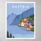 Illustration on Austria Hallstatt mountain village with Lake in the Austrian Alps landscape background