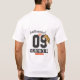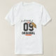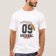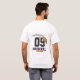 This image showcases a man wearing a white, short-sleeved crew neck t-shirt featuring a bold and stylised graphic design. The central design element is the large number "09" in a thick, black, blocky font with a white outline, reminiscent of sports jersey numbers.