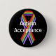 Rainbow ribbon. Black background. White: Autism Acceptance.