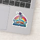 An astronaut jumping off a rainbow with the words Autism Acceptance underneath.