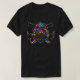 I give wanted to give this a 4 instead of a 5 because these Basic DARK T0shirts run unexpectedly SLIM or Narrow. Which is great if you do not have a potbelly, but I have a paunch. It isn't the shirt's fault that I've got a beer belly. The design and shirt itself is a quality cotton shirt. The color is more of a deep purple, but still a very pretty color. The Basic DARK T-shirts run a bit SLIMMER than the Basic Ts. The neck is a fraction narrower (or seems to be narrower) also. I'm a paunchy middle-aged woman and my neck is 12 inches (31cm) thick and the neckline fell about the same as in the photo of the man, and I had the desire to tug it a bit. So if you're a thick necked man or like loose shirts, be aware these are slimmer shirts. Once I get rid of my lockdown paunch it'll look great. The shirt washed well in cold water with no apparent bleeding. We don't have a dryer, so it hung dry. Did not shrink. Love the colors and the design. The design looks smaller on my shirt than it does on the model on-line. But still, it looks good on the shirt. The printing looks as it does on the model, just the size seems fractionally smaller. Washed garment in cold water, hung dry and design appeared unaffected.