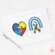 Good packing with cardboard envelope. Shipping with UPS tracking is cool watching it travel around the globe to my door. Gloss finish really good, good adhesive used on the sticker, used it to cover a strange apple logo on my tablet and fairy dust the case. Also have a spare sticker to slap on my car. {;-)