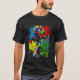 I give wanted to give this a 4 instead of a 5 because these Basic DARK T0shirts run unexpectedly SLIM or Narrow. Which is great if you do not have a potbelly, but I have a paunch. It isn't the shirt's fault that I've got a beer belly. The design and shirt itself is a quality cotton shirt. The color is more of a deep purple, but still a very pretty color. The Basic DARK T-shirts run a bit SLIMMER than the Basic Ts. The neck is a fraction narrower (or seems to be narrower) also. I'm a paunchy middle-aged woman and my neck is 12 inches (31cm) thick and the neckline fell about the same as in the photo of the man, and I had the desire to tug it a bit. So if you're a thick necked man or like loose shirts, be aware these are slimmer shirts. Once I get rid of my lockdown paunch it'll look great. The shirt washed well in cold water with no apparent bleeding. We don't have a dryer, so it hung dry. Did not shrink. Love the colors and the design. The design looks smaller on my shirt than it does on the model on-line. But still, it looks good on the shirt. The printing looks as it does on the model, just the size seems fractionally smaller. Washed garment in cold water, hung dry and design appeared unaffected.