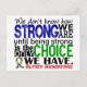 "We Don't Know How Strong We Are Until Being Strong Is The Only Choice We Have" (author unknown).  Share this empowering sentiment while advocating Autism awareness with our line of inspiring t-shirts, apparel, and merchandise featuring a variety of text fonts and puzzle Autism support ribbon.  Perfect gift idea for any Autism warrior or survivor!