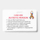 Emergency contact information can be added on one side and there is an explanation of common autistic behaviours on the other side.