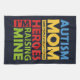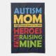 Autism awareness inspirational and affirmation pillow for your every day use, during the month of April, or any other time of the year. The saying is in bold, bright, and colourful typography. "Autism Mum - Some People Look Up To Their Heroes. I'm Raising Mine"