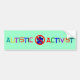 Rainbow: Autistic Activist. Blue: puzzle piece. Red: no sign. Sea foam green: background