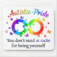 Colorful infinity symbol for Autistic Pride and the message of “You don't need a cure for being yourself” with beautiful butterflies, hearts, and flowers. It's a great gift to celebrate Autistic Pride Day on June 18th each year.