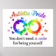 Colorful infinity symbol for Autistic Pride and the message of “You don't need a cure for being yourself” with beautiful butterflies, hearts, and flowers. It's a great gift to celebrate Autistic Pride Day on June 18th each year.