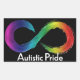 Autistic Pride text with rainbow neurodiversity infinity logo.