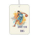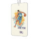 This auto air freshener is shown with a sports basketball player print.