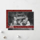 A modern photo Christmas card design with your family photo filling the card face and automatically converted to black and white. Fun modern art Christmas tree decor with dark red text band for your words.