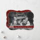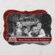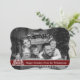 A modern photo Christmas card design with your family photo filling the card face and automatically converted to black and white. Fun modern art Christmas tree decor with dark red text band for your words.