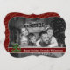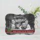 A modern photo Christmas card design with your family photo filling the card face and automatically converted to black and white. Fun modern art Christmas tree decor with dark red text band for your words.