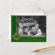 Personalise the front and back of this fun photo Christmas postcard. A modern clean photo Christmas card design with your family photo auto-converted to striking black and white filling the card face behind a Christmas green and gold frame highlighted with a pine and holly bough. Bottom band holds your names and Christmas greeting in a soft green font. You can personalise the backside holiday greeting, your return address and your names in script near the bottom with space for you to add a handwritten personal note.