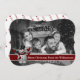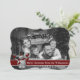 A modern photo Christmas card design with your family photo filling the card face and automatically converted to black and white. Fun snowman decor with dark red text band for your words.
