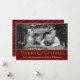 Your photo will be automatically converted to black and white then added to this stylish Christmas card with a Christmas red banner at the bottom holding the text Merry Christmas in sparkling gold along with your names. This design carries over to the backside with a pattern of sparkling gold Merry Christmas over the same red. Stylish. Simple.