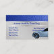 Auto detailing business cards with water drops design and simulated silver metallic finish printed on the front with text that can easily be personalised and image of a sports car. Best business cards for a mobile detailing business, car wash, or cleaning service
