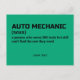 Celebrate your favourite mechanic with this auto mechanic funny definition design. A great way to bring humour to garages, workshops, and auto repair shops. Perfect for coworkers, shop owners, or employees who spend their days fixing engines and cars. A fun collectable for auto mechanic postcards and gifts.