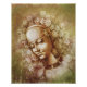 Pencil sketch illustration in an Old World style with steampunk sensibilities. Gears of automation frame a beautiful, dreamy robot face. By Paxdomino.