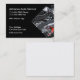 Modern automotive business card template style with car engine in the background and a simple layout for the auto repair and service industry. Presented on page format business card stock that is taller than standard size for greater visual impact.