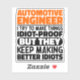 Funny Automotive Engineer Sayings "Automotive Engineer I Try To Make Things Idiot Proof But They Keep Making Better Idiots". Grab this Funny Automotive Engineer design as a funny gifts for an awesome mum, dad or friend.