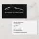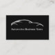 Automotive business cards in a simple minimalist style with silver tone car silhouette in the background and simple classic business card layout.