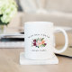 Elegant floral logo mug design features your name and/or business name curved around a bouquet of lush watercolor roses and greenery in autumn hues of burgundy, blush pink, peach and sage.
