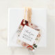 Stylish, good quality, looked great, pre holes for tying ribbon onto were perfect fit. We used them to tie round the neck of miniature spirit bottles. Colours and background looked great. Printing was perfect and a really nice product