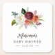 Autumn Boho Blooms Personalised Baby Shower Square Paper Coaster