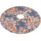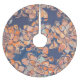 This custom holiday Christmas tree skirt features a beautiful vintage style botanical pattern of florals in autumn navy blue and desert orange. Personalise it with your name. Great gift idea.