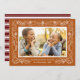 Wish friends and family a happy Thanksgiving -- and share a favourite fall photo -- with our Autumn Botanicals photo card. An intricate botanical border in crisp white on a rich pumpkin background frames your horizontal photo in this chic and elegant Thanksgiving card. Personalise our Autumn Botanicals card with your own custom greeting (shown with "Thanksgiving Wishes") and your family name and year.