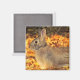 Gorgeous nature photo of an adorable wild rabbit in vibrant orange fall leaves on a sunny autumn day.